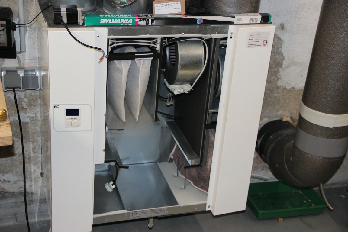 Zentrale Lüftungsanlage mit Wärmerück-gewinnung.